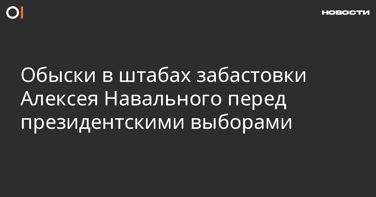 В преддверии президентских выборов 18 марта в штабах забастовки Алексея Навального проходят обыски. Полиция изымает листовки, наклейки и значки «Забастовки избирателей», брошюры о выборах и плакаты с политиком.