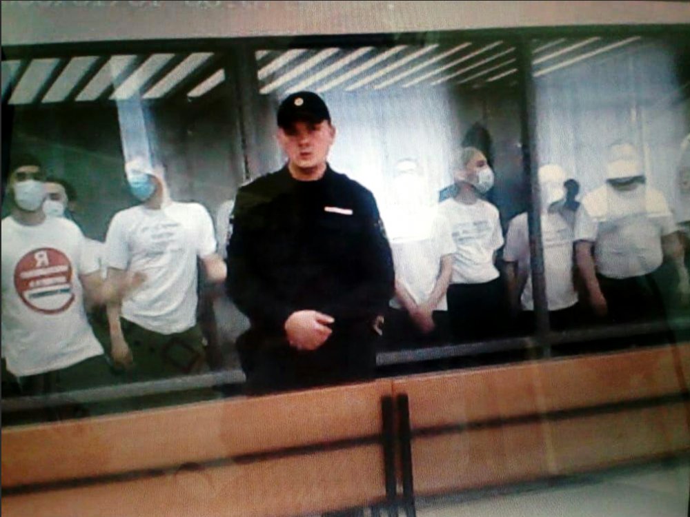 После перерыва подсудимые заявляют, что возможность общения с защитниками и обмена документами им не предоставлялась. Судья спрашивает у начальника конвоя: «Предоставлялась возможность?» Тот отвечает: «Да». Судья продолжает процесс».