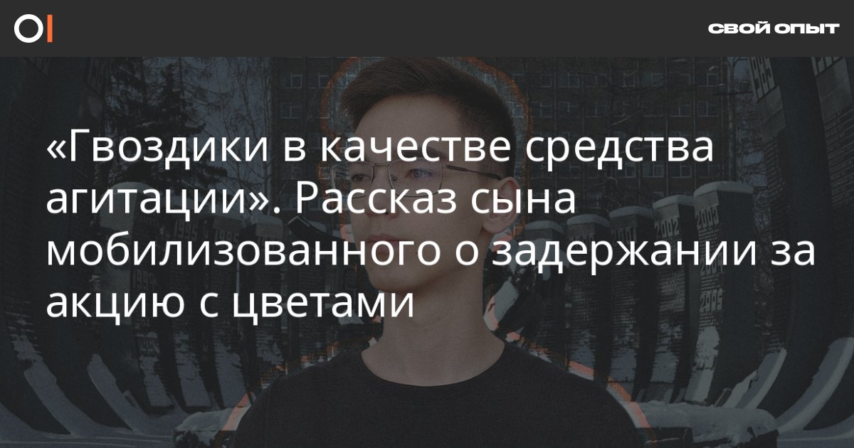 В Екатеринбурге оштрафовали сына мобилизованного, Ивана Букина, который 10 февраля возложил цветы к мемориалу «Черный тюльпан». Это была акция движения жен мобилизованных «Путь домой», которые выступают за возвращение мужчин с фронта. Полицейские «из уважения к отцу» пообещали не заводить дело на задержанного молодого человека, но передумали. Публикуем рассказ Ивана о произошедшем.