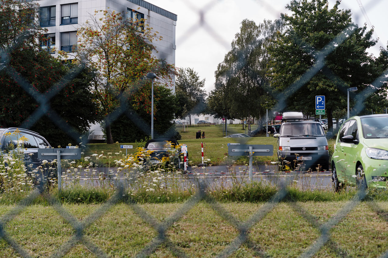 Саша Скочиленко, Кевин Лик и Патрик Шебель на территории военного госпиталя в Кобленце, Германия, 2 августа 2024 года / Фото: Даша Трофимова для ОВД-Инфо