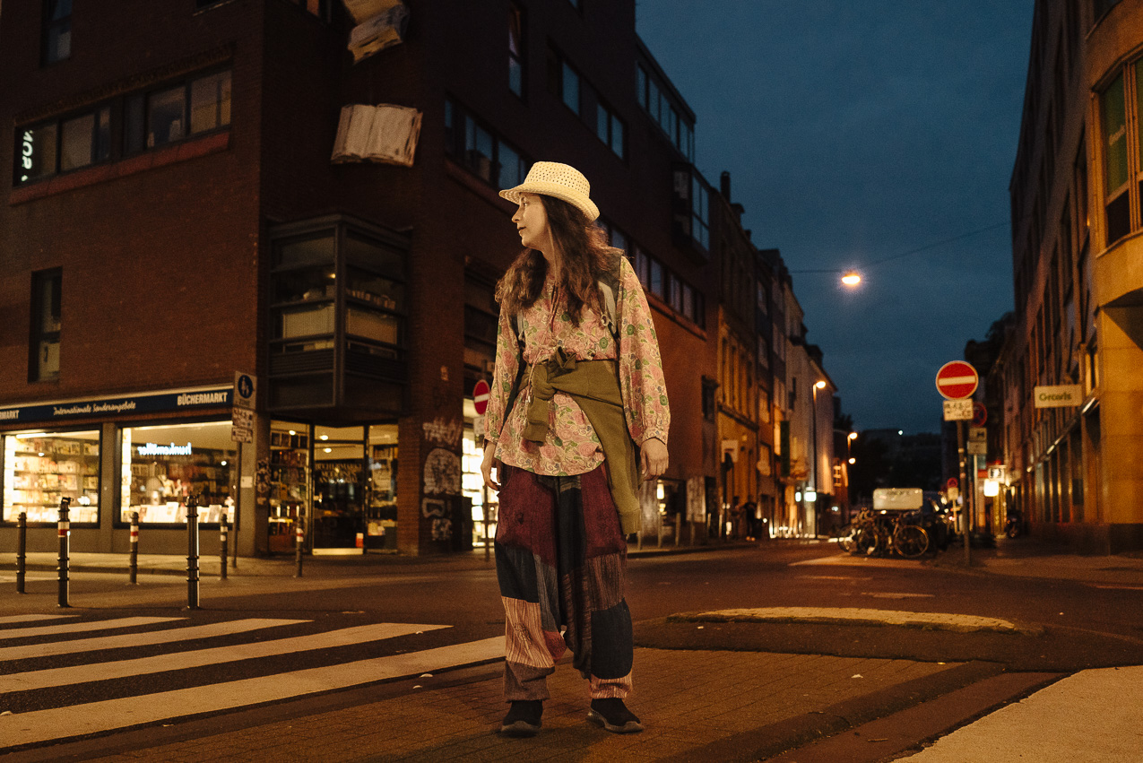 Мы идем по самому центру Кельна. Тихие узкие аллеи сменяются шумными проспектами, и когда мы проходим мимо заведений, где особенно много людей и разносится музыка, Саша слегка морщится, будто громкость резко выкрутили на максимум. Мы идем и идем, и она никак не может находиться, но признается, что с непривычки ноги быстро устают.
