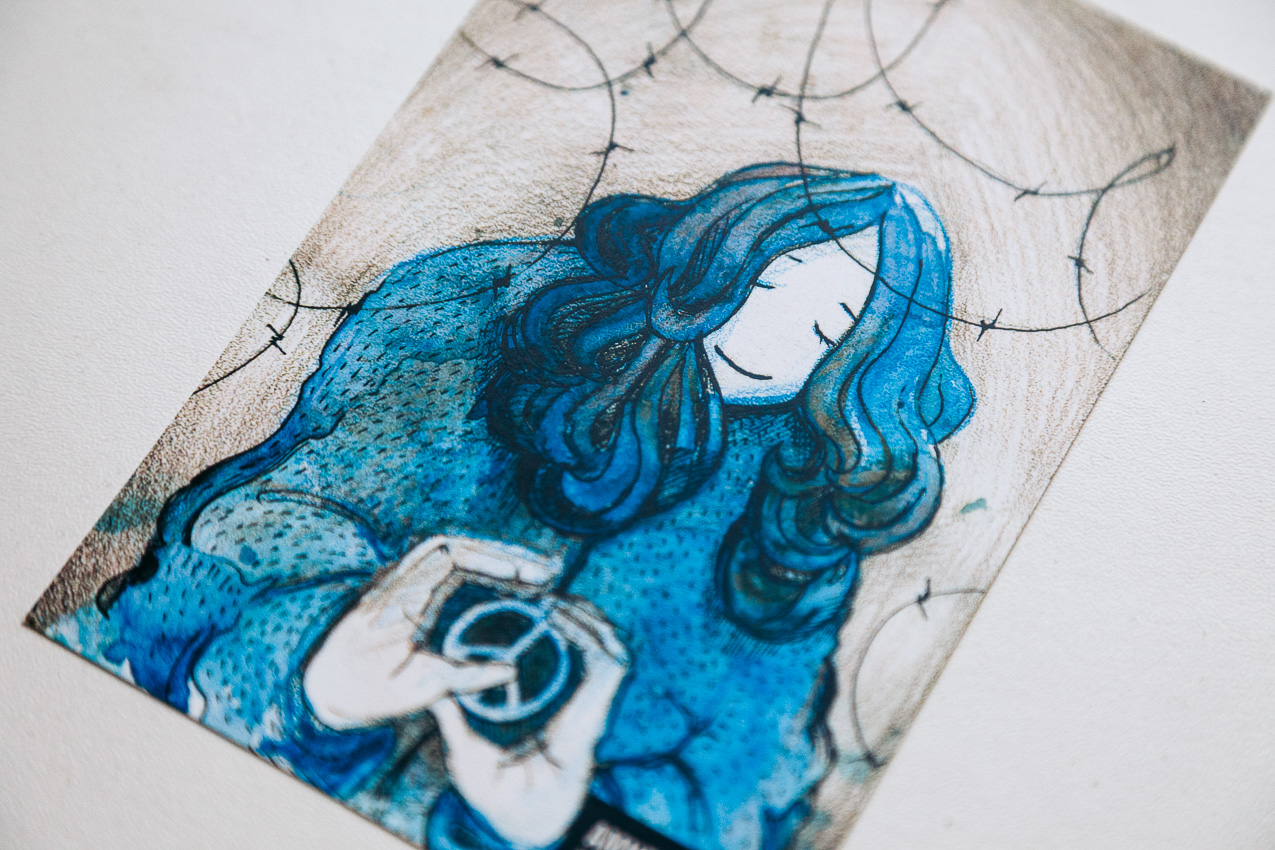 Открытка с рисунком Саши Скочиленко из СИЗО, выпущенная Amnesty International / Фото: ОВД-Инфо