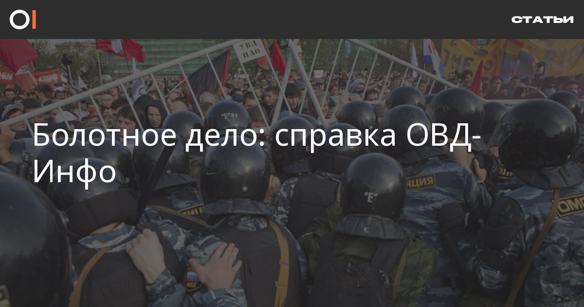 В настоящее время по «Болотному делу» осуждены два человека — один приговорен к четырем с половиной годам лишения свободы по статьям об участии в массовых беспорядках и применении насилия к представителю власти, другой — к двум с половиной годам по статье об организации массовых беспорядков (их дела рассматривались в особом порядке, поскольку они пошли на сделку со следствием). Сейчас в рамках «Болотного дела» в активной фазе находятся два судебных процесса — по выделенному в отдельное производство делу инвалида II группы, которого обвинение требует отправить на принудительное психиатрическое лечение (ему инкриминируют участие в массовых беспорядках и насилие по отношению к представителям власти; в настоящее время он находится под стражей), и по так называемому «Делу 12». Одиннадцати обвиняемым инкриминируют участие в массовых беспорядках, восьмерых из них обвиняют также в применении насилия в отношении сотрудников полиции. Двенадцатая обвиняемая, по версии следствия, призывала к массовым беспорядкам. Из этих двенадцати одна обвиняемая находится под подпиской о невыезде, двое под домашним арестом, остальные — под стражей в следственных изоляторах.