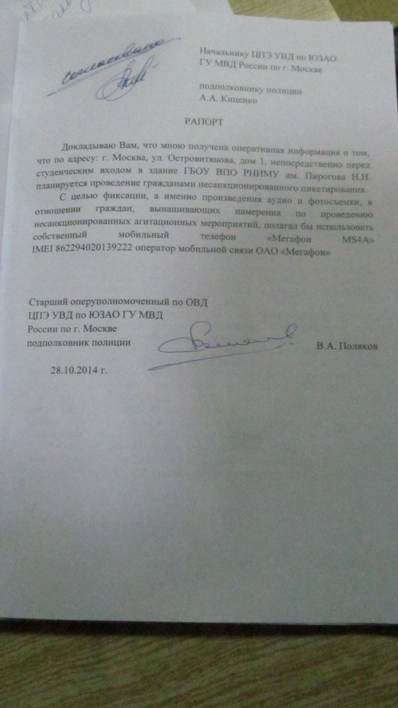 19 января в Гагаринском районном суде Москвы завершилась эпопея вокруг довольно странного задержания, произошедшего 29 октября 2014 года возле Российского национального исследовательского медицинского университета (РНИМУ) имени Пирогова. Тогда были задержаны трое членов профсоюза «Университетская солидарность». Двое из них — бывшие сотрудники РНИМУ Юлия Чебакова и Алексей Паршуков — раздавали листовки, посвященные преследованию членов профсоюза университетским начальством и новым приказам ректора Андрея Камкина, ужесточающим правила жизни студентов, в том числе регламентирующим их внешний вид. Третий, Юрий Бределев, стоял рядом с фотоаппаратом. Еще одна бывшая сотрудница университета и член профсоюза, Руфина Харисова, находилась неподалеку, она проводила одиночный пикет, и ее не тронули.