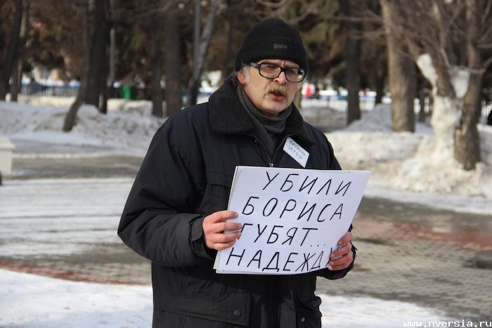 Андрей Калашников в ходе одиночного пикета памяти Бориса Немцова. Фото: ИА «Версия-Саратов»