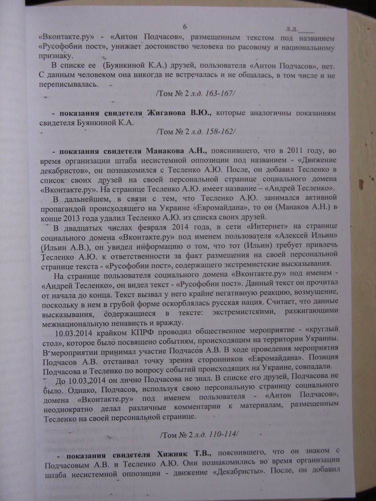 Адвокат продолжала настаивать на том, что дело следует прекратить, и один из главных аргументов состоял в том, что Подчасова обвиняют по двум статьям Уголовного кодекса за одно и то же. Действительно, в обвинительном заключении обоснования обвинения по ст. 280 и ст. 282 абсолютно идентичны.