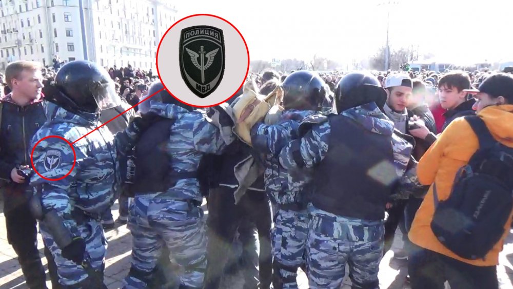 Но сейчас разберем другой момент. На рукавах у ОМОНовцев мы видим вот такие шевроны с символикой МВД. Тем не менее, потерпевший Звонарев является бойцом Росгвардии, да и ОМОН в целом был выведен из подчинения МВД и переведен в Росгвардию еще в 2016 году. Получается, бойцы Росгвардии задерживали граждан, будучи одеты в форму с символикой другого ведомства?