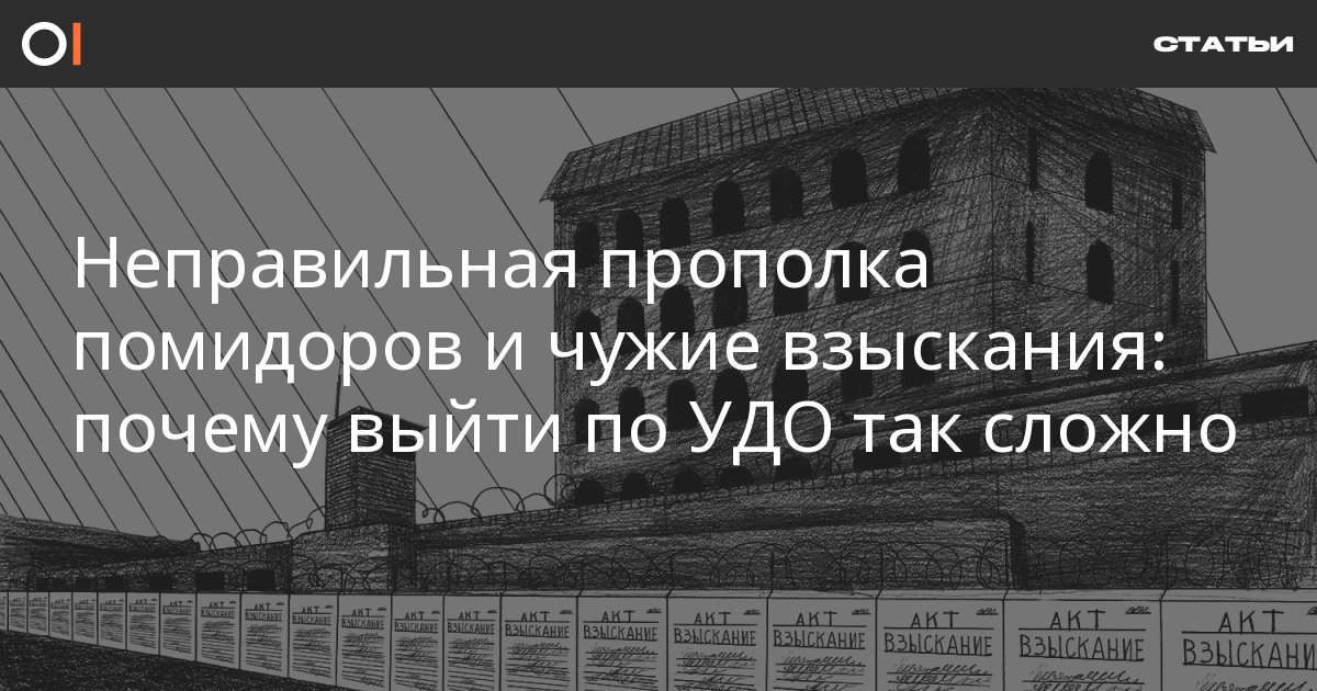По закону выйти на свободу по условно-досрочному освобождению очень просто — нужно хорошо работать, соблюдать режим и никому не грубить. На деле же заключенным отказывают в УДО из-за того, что они неправильно пропалывали помидоры, сидели на кровати или отжимались в майке. Объясняем, как работает эта система и что с ней не так.