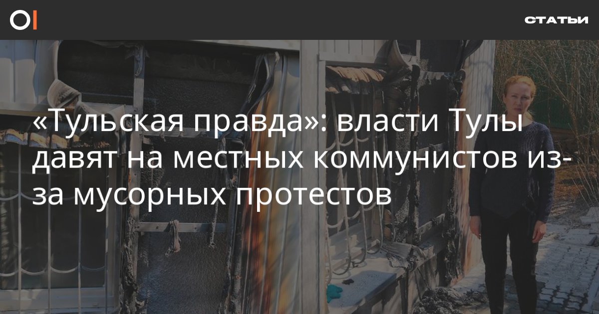 С начала года в Туле и Тульской области люди протестуют против повышения тарифов на вывоз мусора, а также против строительства новой свалки и ввоза мусора из Москвы. К этим протестам присоединилось тульское отделение КПРФ. Это вызвало нервную реакцию со стороны властей. ОВД-Инфо рассказывает о ситуации.
