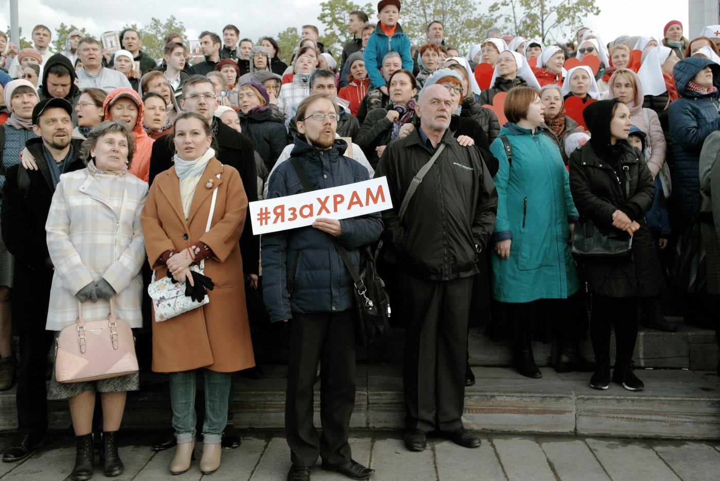 С начала протестов в Екатеринбурге против строительства храма на месте сквера прошло две недели. За три дня противостояния полиция задержала больше 100 человек, суды назначали им аресты, штрафы и обязательные работы. Мы собрали галерею, чтобы напомнить, как выглядели протесты.
