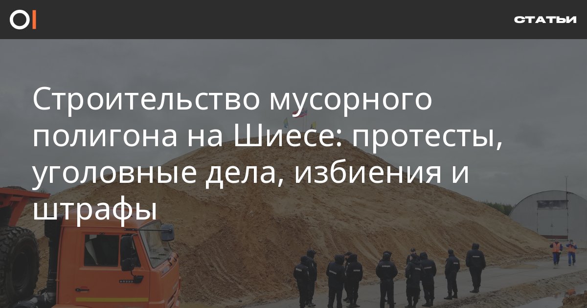 Узловая станция Шиес в Архангельской области находится на границе с Республикой Коми. В этом месте строят мусорный полигон, чтобы свозить отходы из Москвы. Местные жители мириться с этим не захотели: они стали выходить на акции протеста и организовали эковахту. Сейчас строительство приостановили. Проект будет проходить общественные слушания и экспертизы. ОВД-Инфо рассказывает, как преследовали противников мусорного полигона.