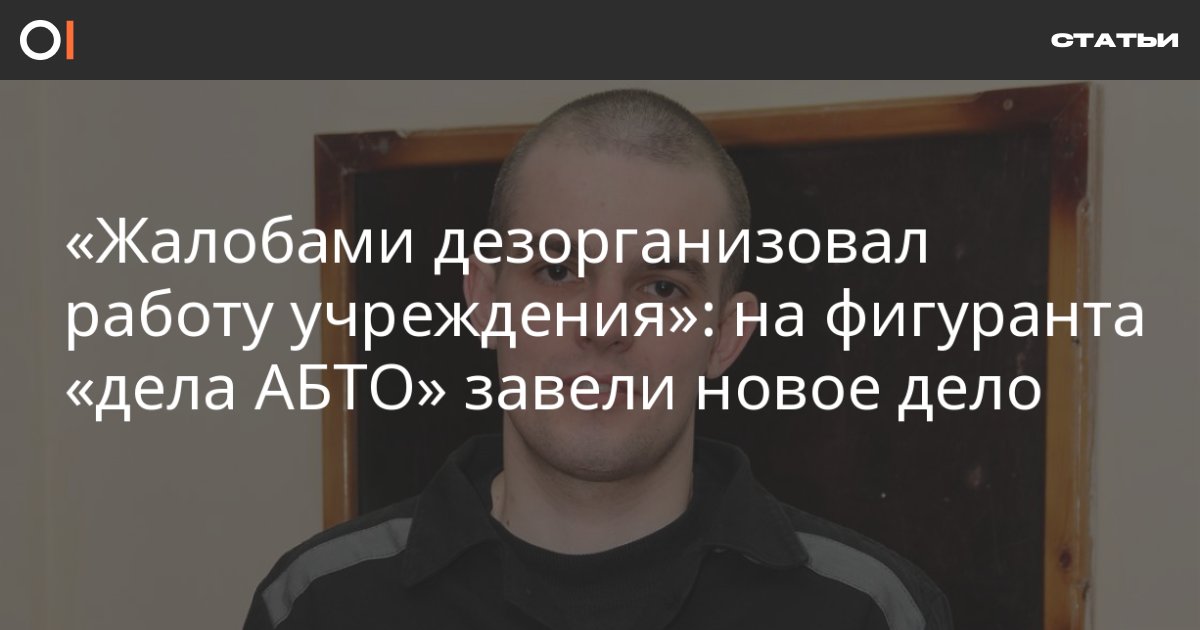 На фигуранта «дела АБТО» Богдана Голонкова за три месяца до освобождения завели уголовное дело по статье о дезорганизации исправительного учреждения (ст. 321 УК). Голонков считает, что ему мстят за попытку распространить информацию об убийстве сокамерника. ОВД-Инфо с незначительными правками публикует фрагменты из открытого письма Голонкова. В нем он рассказывает о провокациях, издевательствах, угрозах и попытке суицида.