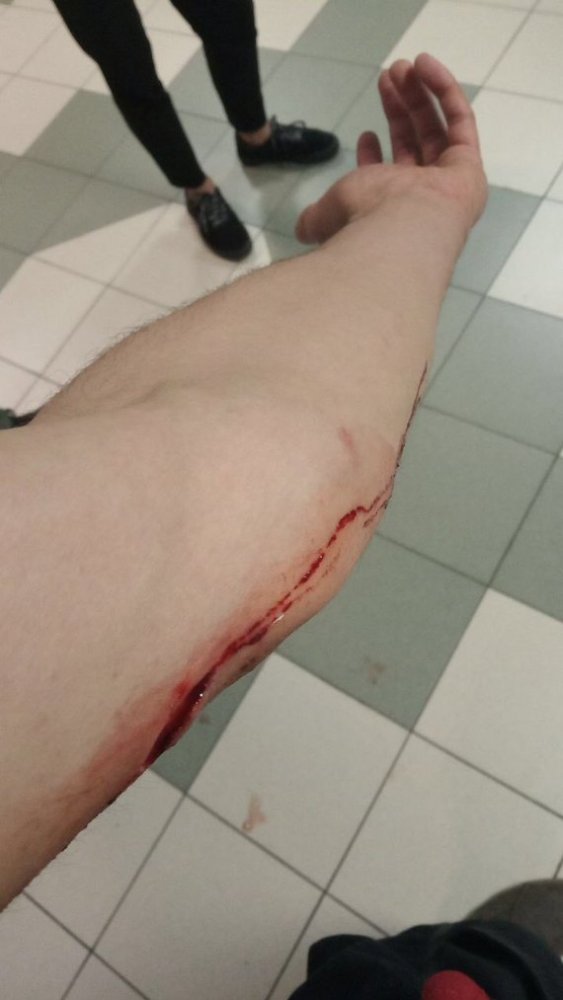 — Дежурный вызвал меня для уточнений деталей в протоколе. Для того, чтобы в дверь прошел только я с адвокатом, встал полицейский в штатском, и он нас прямо затолкал в эту дверь и резко захлопнул ее. Он попал дверью мне по локтю, с руки срезало кусок кожи. Из ОВД меня на скорой отвезли в травмпункт, где мне зашили рану. Немного, но зашивать пришлось. Я написал заявление в Следственный комитет, — рассказывает Усов.