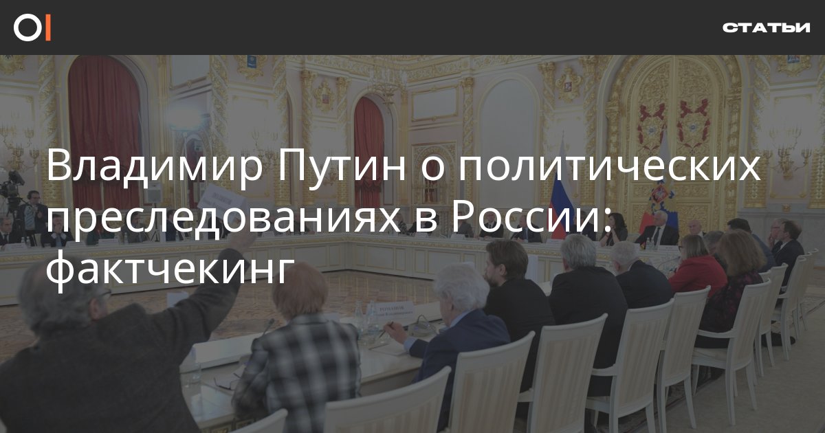 10 декабря прошла встреча Владимира Путина с Советом по правам человека. Ряд членов совета поднимали темы, касающиеся свободы собраний и политических преследований. Вопрос о том, почему полицейские, сфабриковавшие дело против Ивана Голунова, не наказаны, президент проигнорировал. На большинство других Путин ответил, даже показав знакомство с правозащитными темами. Но некоторые его высказывания явно не соответствуют действительности.