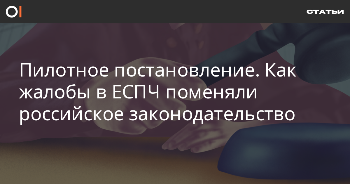 Она добавляет, что у «пилота» есть и плюсы, и минусы. Из плюсов можно выделить то, что в «пилоте» ЕСПЧ дает четкие инструкции государству — что оно должно изменить, чтобы исправить системное нарушение прав граждан. То есть прописывает конкретные действия и следит за их исполнением, что создает дополнительное давление для государства. Тогда как в обычном решении ЕСПЧ суд выдает лишь рекомендации, которые страна может не выполнять.