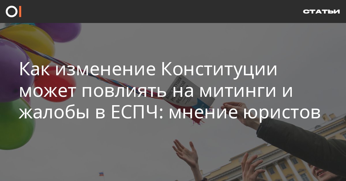 15 января президент заявил, что собирается изменить Конституцию. Среди изменений есть те, которые напрямую касаются работы ОВД-Инфо. Первое — приоритет российских законов над международными: повлияет ли это на выполнение решений ЕСПЧ? Второе — если местное самоуправление будет подчинено государству, изменит ли это порядок согласования митингов? На эти вопросы отвечают юристы ОВД-Инфо Александра Чиликова и Денис Шедов.