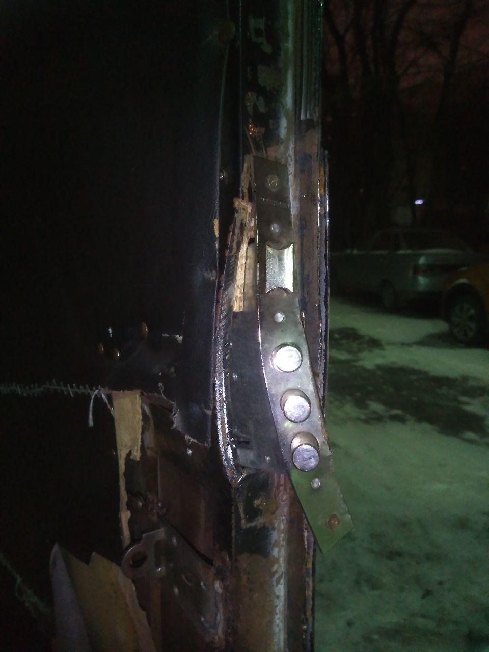 Дверь бункера нацболов до и после обыска 30 декабря 2019 года / Фото: телеграм-канал «#будни Бункера»