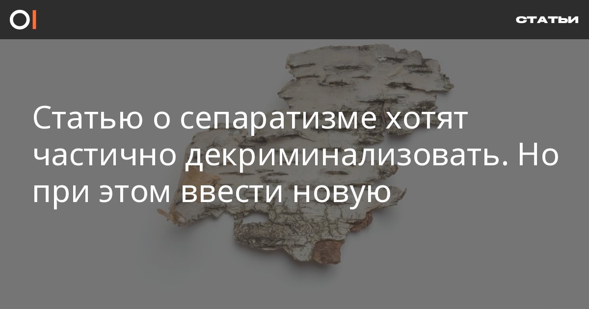 В Госдуму внесли законопроект об изменениях в закон об экстремизме, которые касаются сепаратистских призывов. Также анонсировано смягчение 280.1 УК (призывы к нарушению территориальной целостности) и некая новая статья УК, которая будет карать за отчуждение территорий. Правозащитники опасаются, что случаев преследования за «сепаратизм» станет больше.