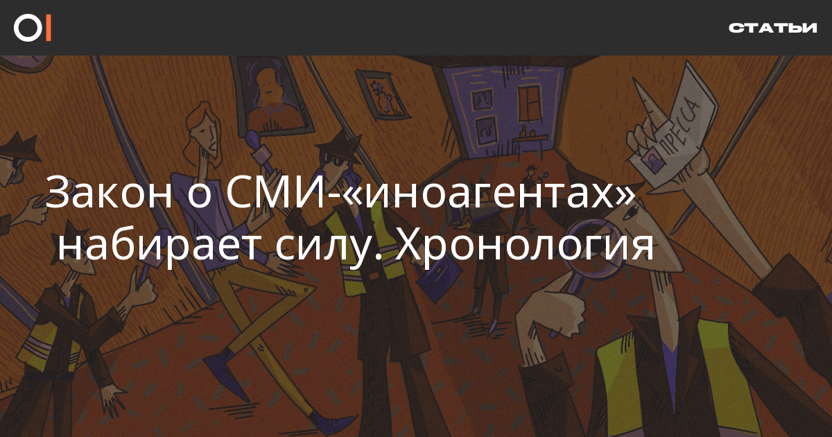 15 июня в Госдуме заявили, что «Медиазону» могут признать «иностранным агентом». Только за последние несколько месяцев этот статус получили три издания: Meduza, «Первое антикоррупционное СМИ» и VTimes — последнее было вынуждено закрыться. Всего в реестре СМИ-«иностранных агентов» числится 15 юридических и пять физических лиц. ОВД-Инфо публикует хронологию изменений в законе о СМИ-«иностранных агентах» с комментариями правозащитников.
