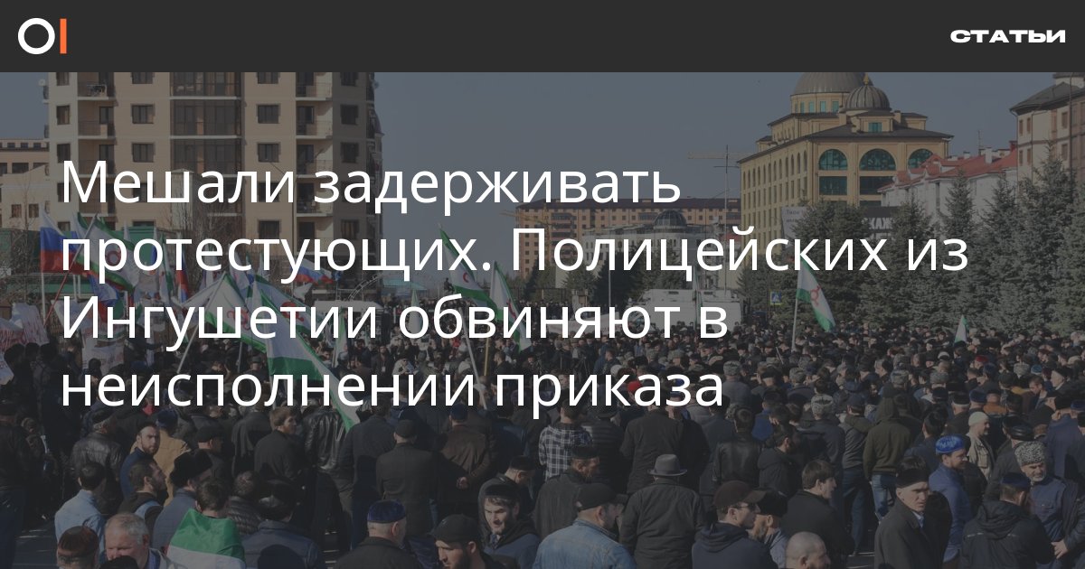Рано утром 27 марта 2019 года в Магасе, столице Ингушетии, произошли столкновения между силовиками и участниками протестов против договора об обмене землями с Чечней. По обвинению в сопротивлении полиции под судом оказалось более полусотни человек. Уголовные дела возбудили и против 13 местных полицейских, которые пытались помешать эскалации насилия. Их обвиняют в неисполнении приказа.