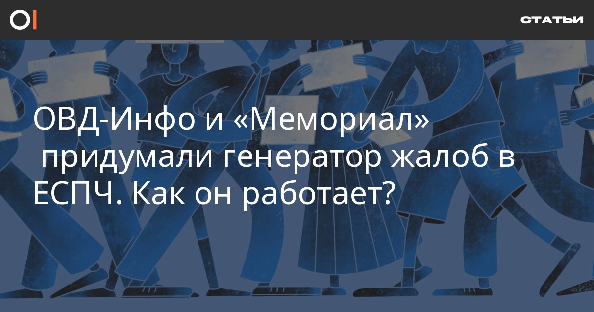 В середине ноября 2019 года ОВД-Инфо вместе с Правозащитным центром «Мемориал» запустили генератор жалоб в Европейский суд по правам человека (ЕСПЧ). За это время с помощью сервиса было отправлено более 800 жалоб. Около половины из них уже коммуницированы — по ним с большой вероятностью заявитель получит положительное решение. ОВД-Инфо рассказывает о работе генератора жалоб на примере историй заявителей и комментариев юристов.