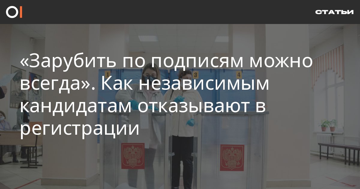 На выборах 2021 года из 174 самовыдвиженцев в Госдуму зарегистрироваться смогли только 11. Многие из них уверены, что формальные недочеты — только повод отказать в регистрации.