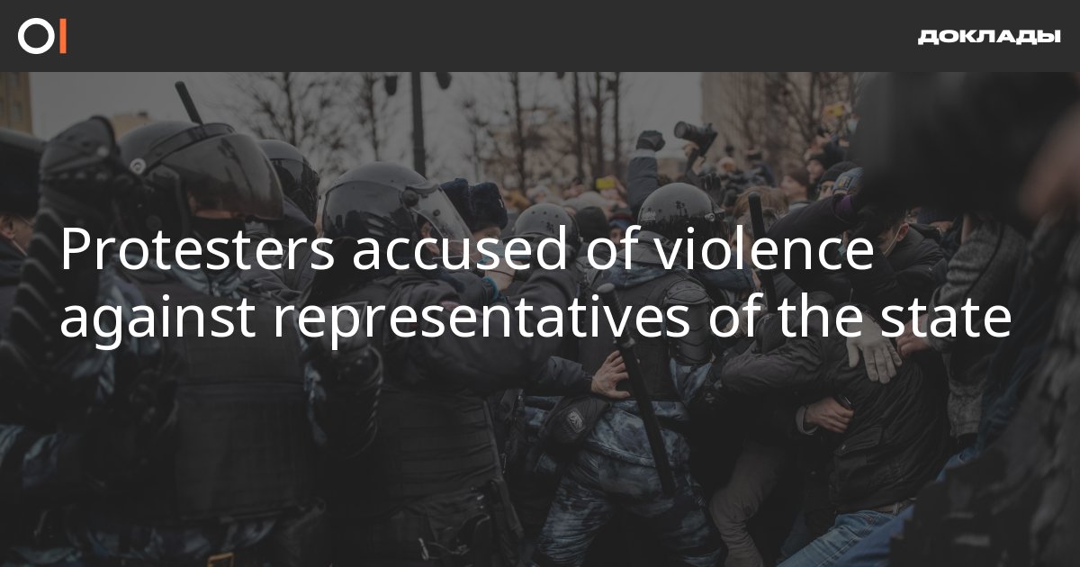 Доклад на русском языке: Обвинения участников акций в насилии в отношении представителей власти: Как применяется статья 318 УК и в чем специфика наказаний по «митинговым» делам