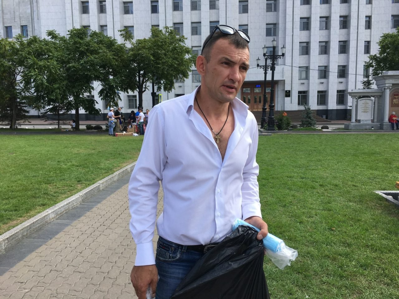 - On July 24, the police detained two residents of Vladivostok, Kirill Chistyakov and Svetlana Lutsuk, for distributing flyers containing an invitation to a subbotnik [всплывашка a Russian word for voluntary Saturday work, especially clean-up; here, a euphemism] scheduled for July 25. Initially the police had planned to issue reports of damage to another’s property (Article 7.17 of the Code of Administrative Offenses). However, later it transpired that Chistyakov was charged with organising a mass event without submitting a notification. The report said that Chistyakov «engaged in posting up flyers containing appeals to hold a political subbotnik in the central square of Vladivostok, i.e. organised a public event without submitting a notification in due order.» The court requalified the case as participation in an unauthorised mass event and fined Chistyakov for 10,000 roubles.