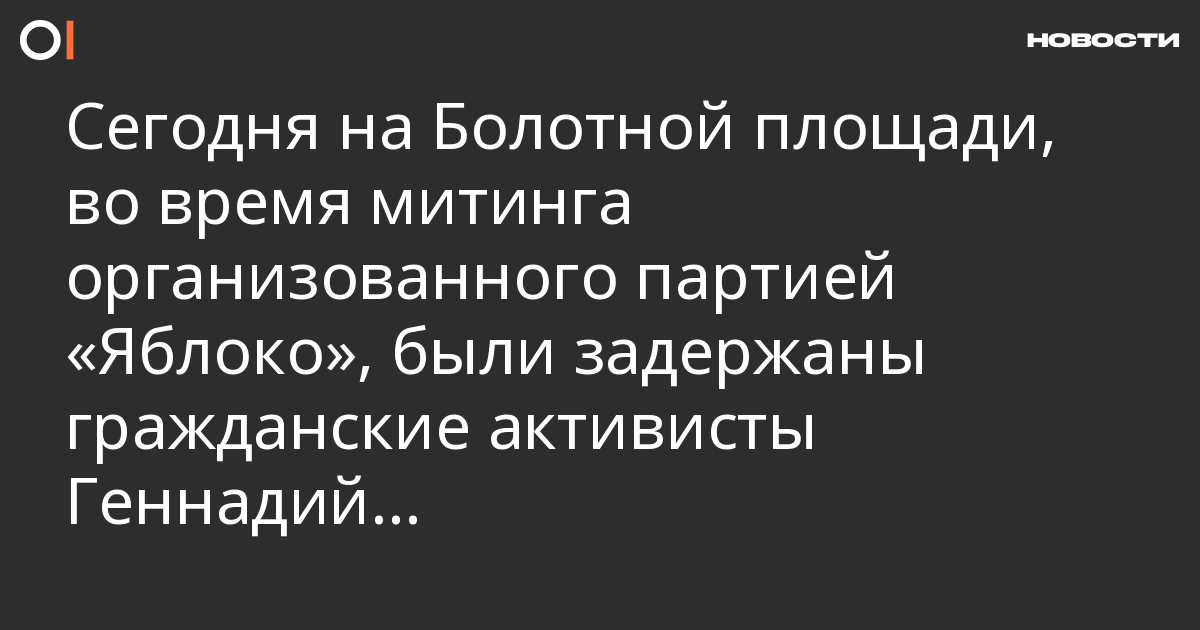 Сегодня на Болотной площади, во время митинга организованного партией «Яблоко», были задержаны гражданские активисты Геннадий Строганов и Руслан Исламов, раздающие листовки с призывом придти 21 декабря на пикет возле здания Государственной Думы РФ. Генадий Строганов сообщил «Фронде ТВ»: сотрудники полиции попросили нас предоставить им листовки которые мы раздавали, после чего подошли другие сотрудники и нас задержали. Активисты были доставлены в [#ОВД Якиманка] откуда их выпустили через час не найдя в их действиях состава административного правонарушения. [#17.12.11 Болотная площадь]