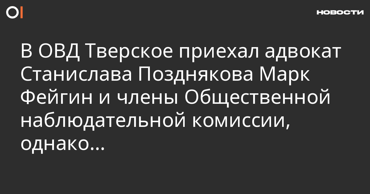 В ОВД Тверское приехал адвокат Станислава Позднякова Марк Фейгин и члены Общественной наблюдательной комиссии, однако сотрудники ОВД пока отказываются признавать наличие у них Позднякова.