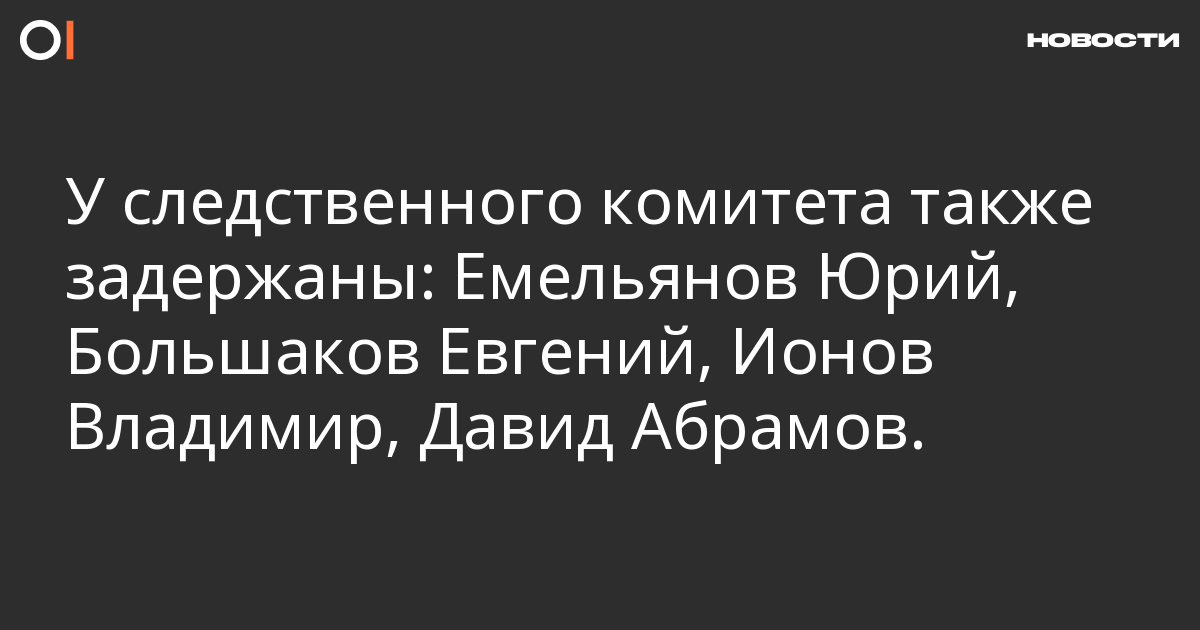 У следственного комитета также задержаны: Емельянов Юрий, Большаков Евгений, Ионов Владимир, Давид Абрамов.