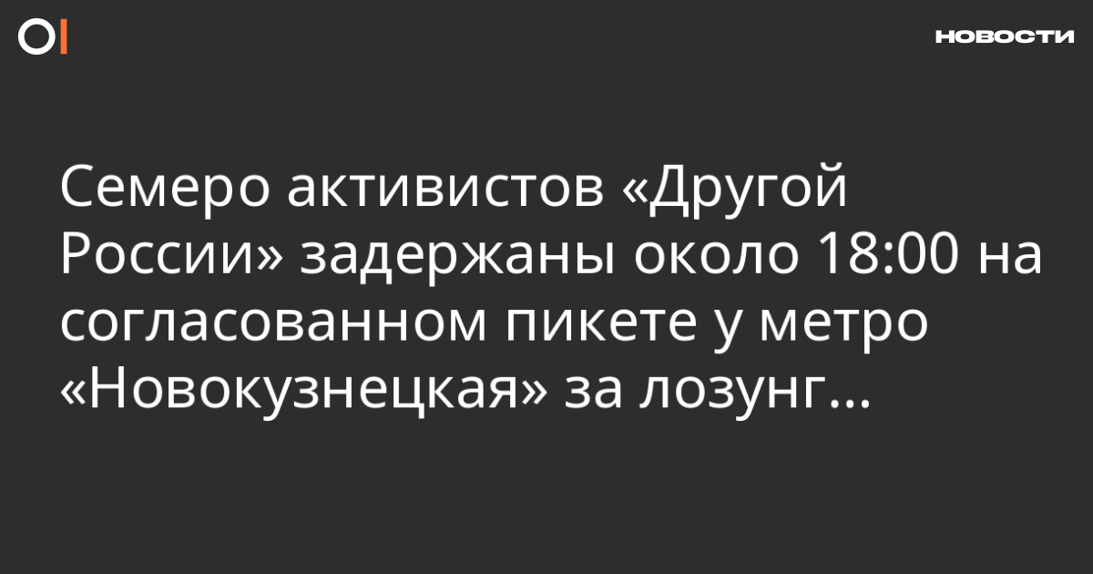 Семеро активистов «Другой России» задержаны около 18:00 на согласованном пикете у метро «Новокузнецкая» за лозунг «Россия без Путина».