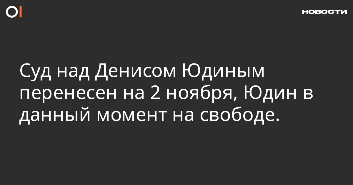 Суд над Денисом Юдиным перенесен на 2 ноября, Юдин в данный момент на свободе.