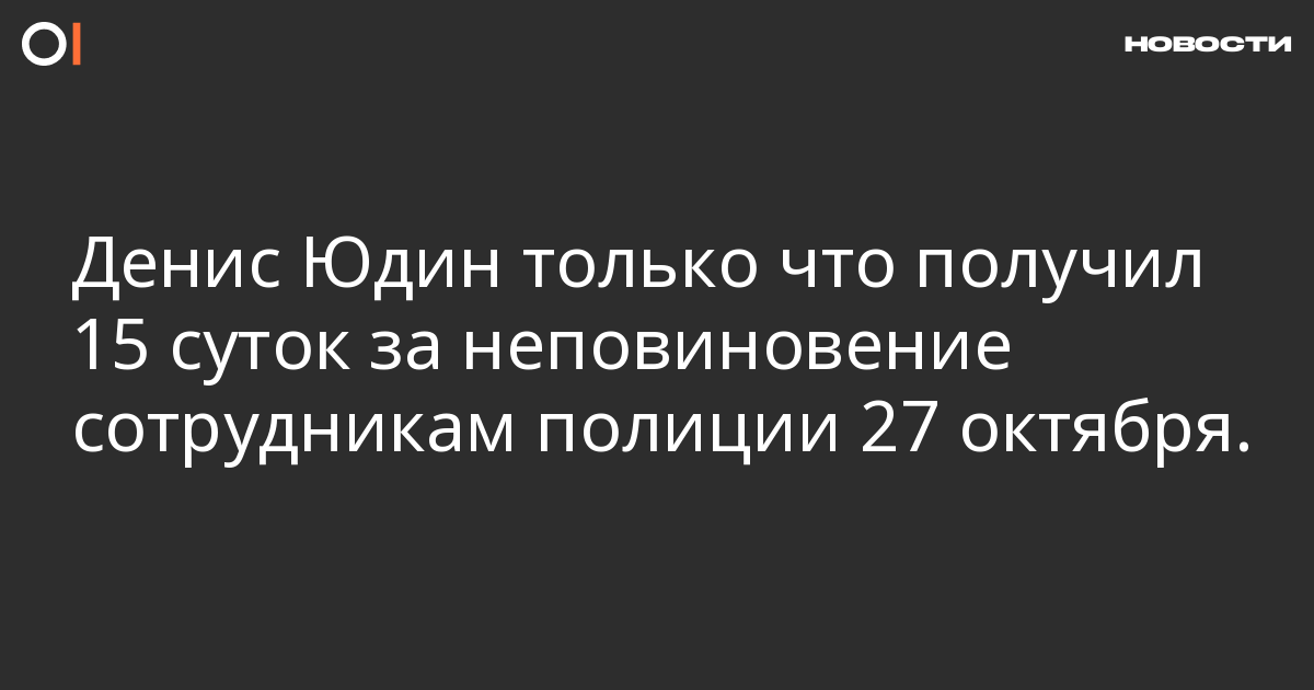 Денис Юдин только что получил 15 суток за неповиновение сотрудникам полиции 27 октября.
