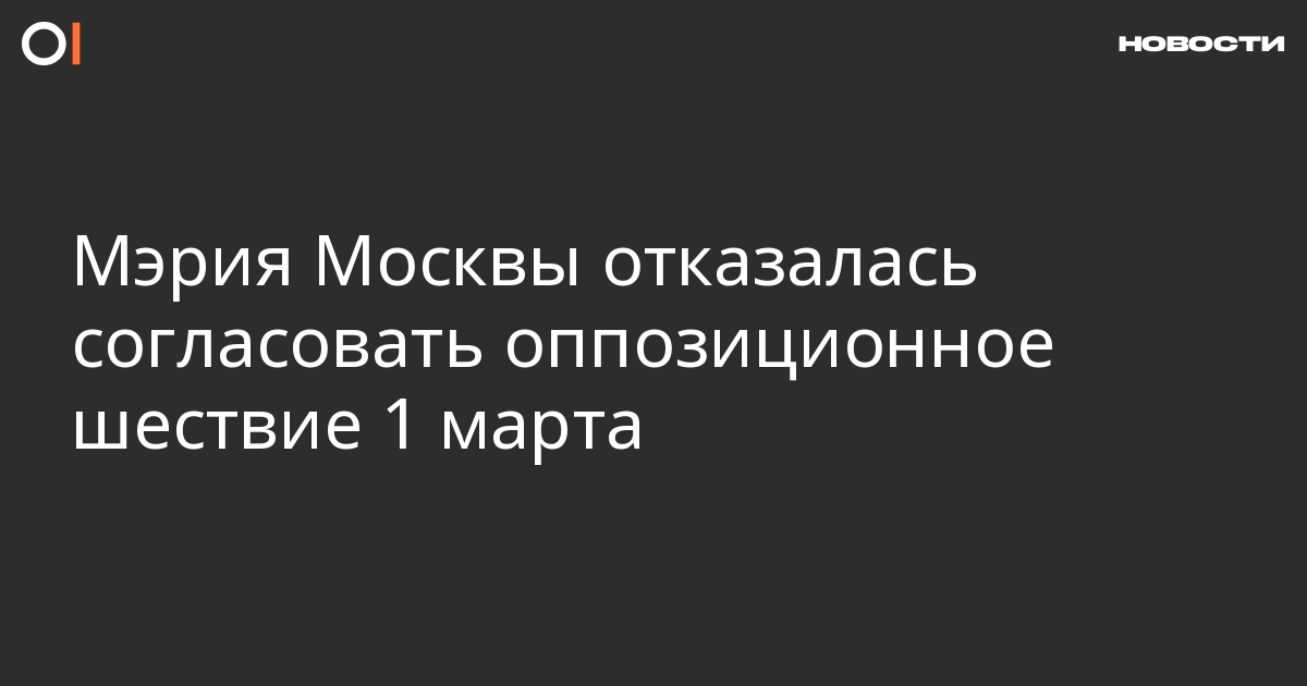 Московская мэрия отказалась согласовать оппозиционное шествие «Весна» по улице Тверская, запланированное на 1 марта. Городская администрация предложила перенести мероприятие из центра Москвы в Марьино. Об этом сообщает 18 февраля «Интерфакс» со ссылкой на одного из организаторов акции Сергея Давидиса.