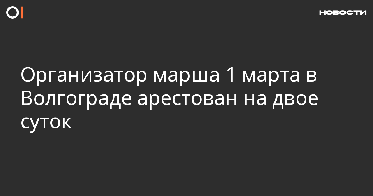 Один из организаторов оппозиционного марша «Весна» в Волгограде 1 марта Анатолий Болтыхов арестован на двое суток. На свободу он выйдет 1 марта в 19:30, сообщает «Кавказский узел» со ссылкой на жену активиста Екатерину Болтыхову. Болтыхов был задержан вечером 27 февраля и обвинен в мелком хулиганстве. По словам его жены, активиста обвинили в том, что он нецензурно выражался и толкнул некоего человека. Ранее сообщалось, что Болтыхов был задержан во дворе собственного дома после того, как на него напал «местный наркоман Гошик».
