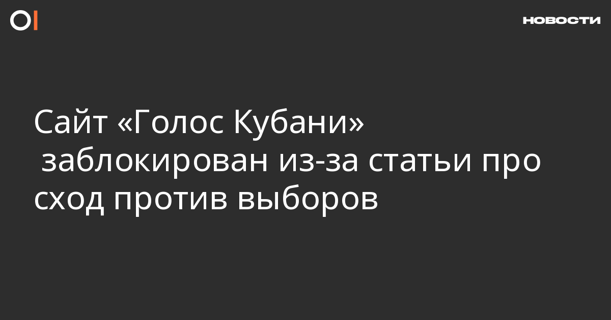 Роскомнадзор заблокировал оппозиционный сайт «Голос Кубани». Причиной стало размещение статьи про сход в Краснодаре и в станице Полтавской против выборов 13 сентября 2015 года. Ведомство посчитало, что в материале содержатся «призывы к массовым беспорядкам, осуществлению экстремистской деятельности или участию в массовых (публичных) мероприятиях, проводимых с нарушением установленного порядка». Скан с документом Роскомнадзора приводит на своей странице в соцсети «ВКонтакте» кубанская активистка Дарья Полюдова.