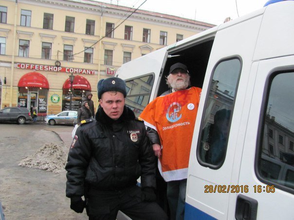 В Петербурге во время несогласованной акции против государственного террора задержан пожилой активист Игорь Андреев. Кроме того, как пишет в соцсети «ВКонтакте» правозащитник Динар Идрисов, полиция пыталась задержать девушку с портретом Бориса Немцова.