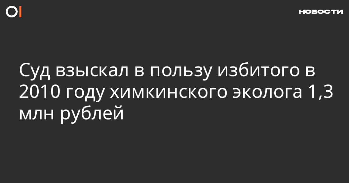 Химкинский суд Московской области взыскал 1,3 миллиона рублей в виде компенсации в пользу эколога Константина Фетисова, на которого в 2010 году было совершено нападение по указанию сотрудника администрации Химок за критику местных властей. Об этом сообщае РАПСИ со ссылкой на адвоката Фетисова Сталину Гуревич.
