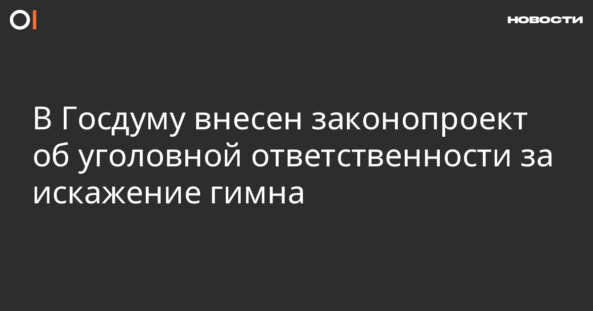 Он предусматривает изменения в ст. 329 УК (надругательство над государственным гербом или государственным флагом России), включив в ее состав надругательство над гимном. Таковым предлагается считать «умышленное искажение музыкальной редакции или текста Государственного гимна Российской Федерации при его публичном исполнении либо опубликовании в средствах массовой информации, электронных или информационно-телекоммуникационных сетях (включая сеть „Интернет“)».