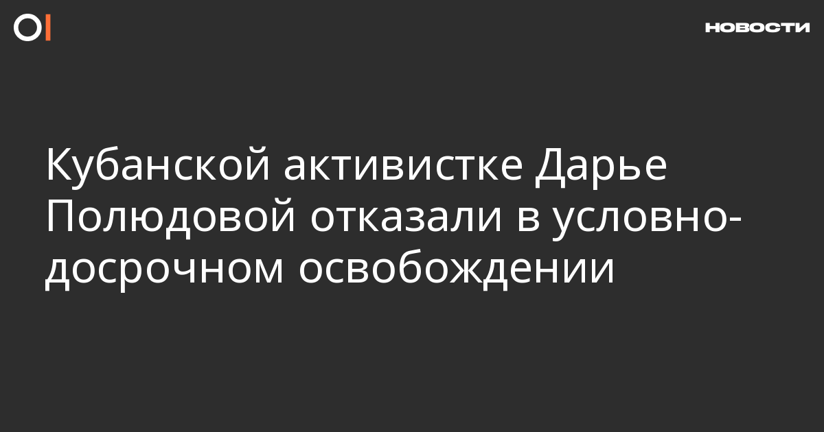 Ленинский районный суд Новороссийска 10 августа отказал в условно-досрочном освобождении кубанской активистке Дарье Полюдовой, получившей два года колонии-поселения за посты в соцсети «ВКонтакте», которые были расценены как призывы к экстремизму и сепаратизму. Об этом сообщается в группе «Свободу Дарье Полюдовой!» в Facebook.