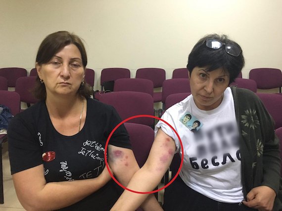 Во время официального траурного мероприятия в школе № 1 члены организации «Голос Беслана» сняли с себя кофты и куртки, под которыми оказались футболки с обвинениями в адрес президента РФ. Их сразу оттеснили в угол помещения сотрудники правоохранительных органов в штатском, а затем они были задержаны и доставлены в ОВД — вместе с журналисткой «Новой Газеты» Еленой Костюченко и корреспондентом «Таких Дел» Дианой Хачатрян. Позже суд приговорил трех задержанных женщин к 20 часам исправительных работ, а еще двух — к штрафам в 20 тысяч рублей.