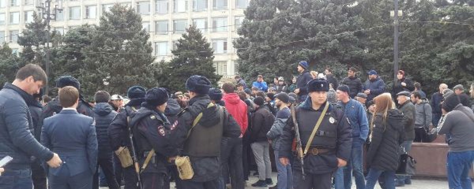 Во время протестного митинга у здания мэрии Махачкалы на площади Ленина днем в понедельник, 31 октября, были задержаны несколько человек. Городское издание «Новое дело» сообщает о более пяти задержанных, по данным «Кавказского узла» были задержаны два-три человека, по данным «Черновика» — от четырех до восьми человек.