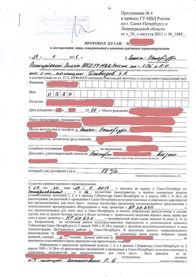Активисты смогли выйти из отдела полиции только ночью, им вернули изъятую технику (проектор и ноутбук), полицейские даже не составляли протокол изъятия. Материалы по ст. 19.1 КоАП будут направлены мировому судье 201-го судебного участка Центрального района, по ст. 19.3 КоАП — в Дзержинский районный суд.