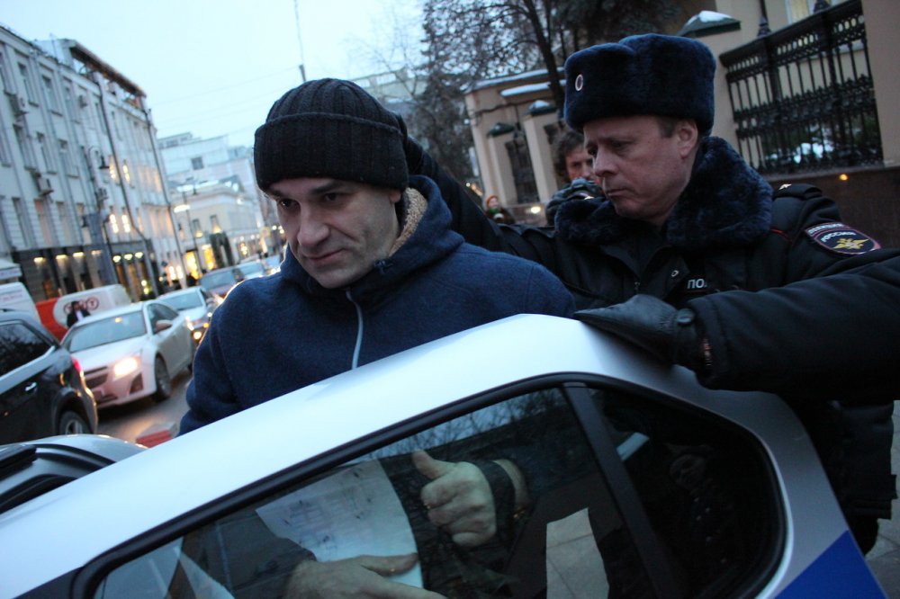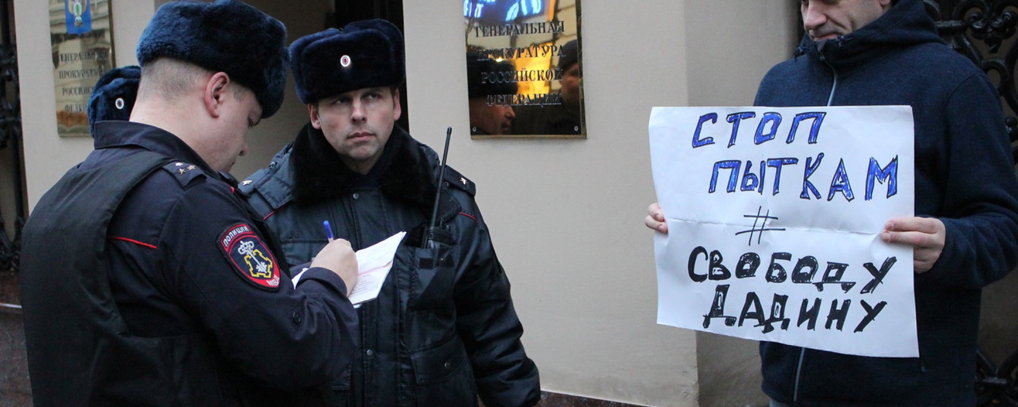 Протоколы по пятой части статьи 20.2 КоАП были составлены на Игоря Клочкова, Константина Цэльмса и Марию Рябикову, задержанных 9 ноября во время проведения серии одиночных пикетов у здания Генпрокуратуры в Москве. Участники акции выступали за отмену статьи 212.1 УК и освобождение осужденного по ней московского активиста Ильдара Дадина. 21 декабря Тверской суд вынес первое решение по этой акции, оштрафовав Цэльмса на 10 тысяч рублей.