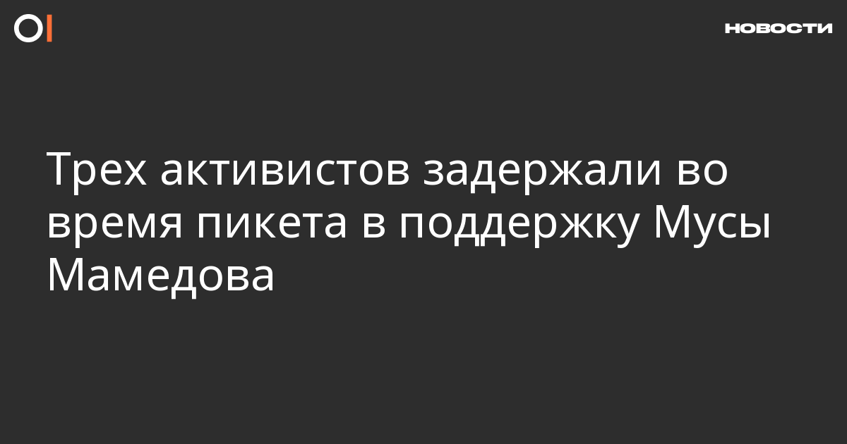 Вечером в Новом Уренгое во время одиночного пикета против выселения из собственного дома был задержан местный житель Муса Мамедов (он проводил одиночный пикет), а также пришедшие его поддержать Юрий Буларга и Дмитрий Олейник. Об этом ОВД-Инфо по телефону сообщил активист Александр Зимбовский. Сейчас все задержанные находятся в полиции, их обвиняют в нарушении порядка проведения пикетов (ст. 20.2 КоАП).