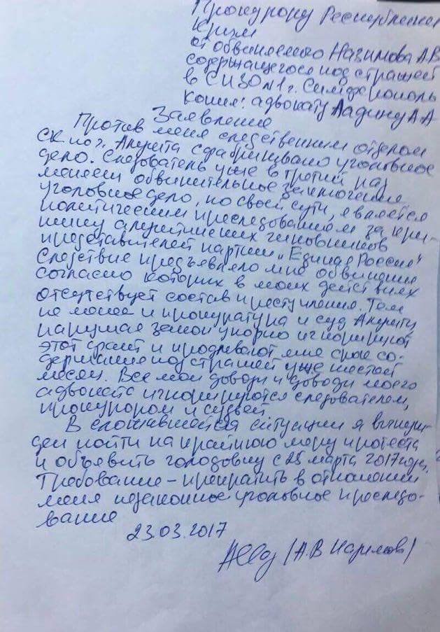 Сидящие в СИЗО № 1 в Симферополе журналист Алексей Назимов и депутат городского совета Алушты Павел Степанченко, обвиняемые в вымогательстве, 23 марта объявили голодовку.