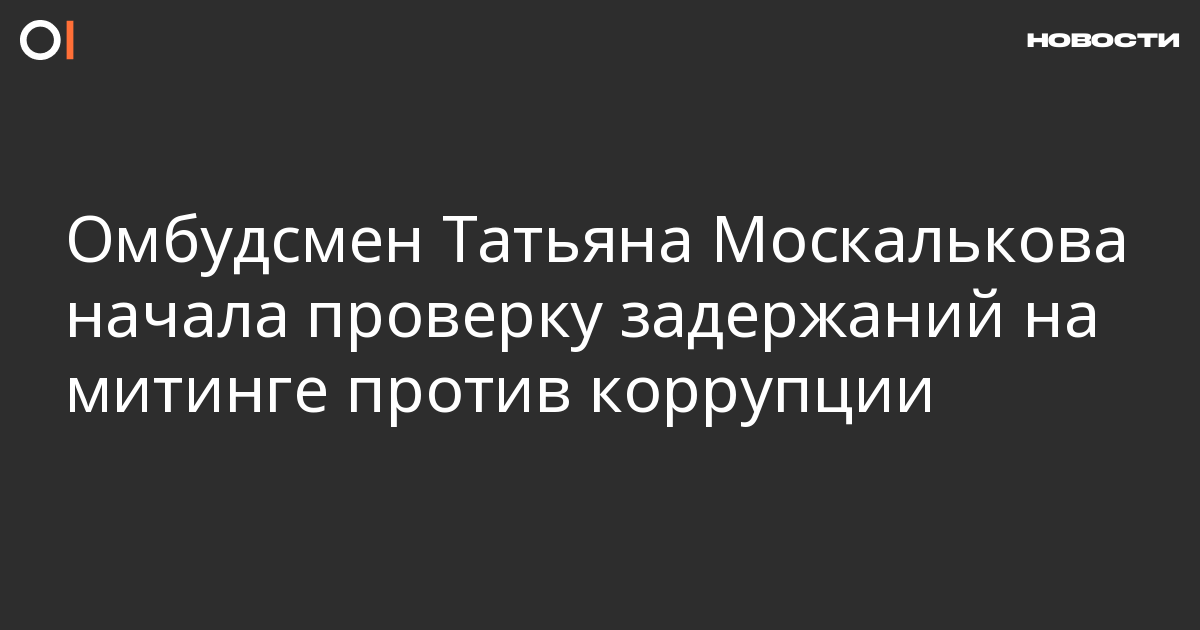Уполномоченный по правам человека в России Татьяна Москалькова заявила о начале проверки событий во время акции против коррупции 26 марта в Москве. Об этом сообщает «Интерфакс» со ссылкой на пресс-службу омбудсмена.