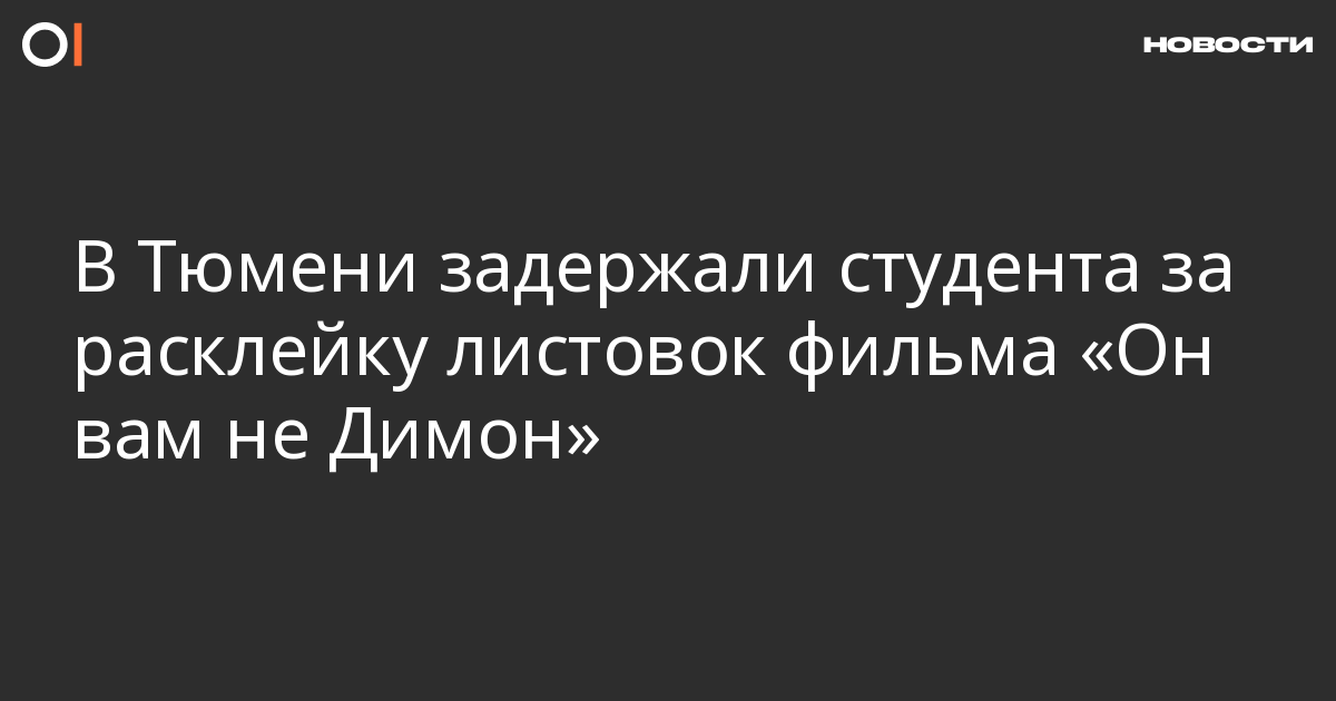 В Тюмени 17-летнего студента Политехнического колледжа Глеба Шафигуллина задержали за расклейку листовок фильма Фонда борьбы с коррупцией Алексея Навального «Он вам не Димон». Об этом студент сообщил «Медиазоне».