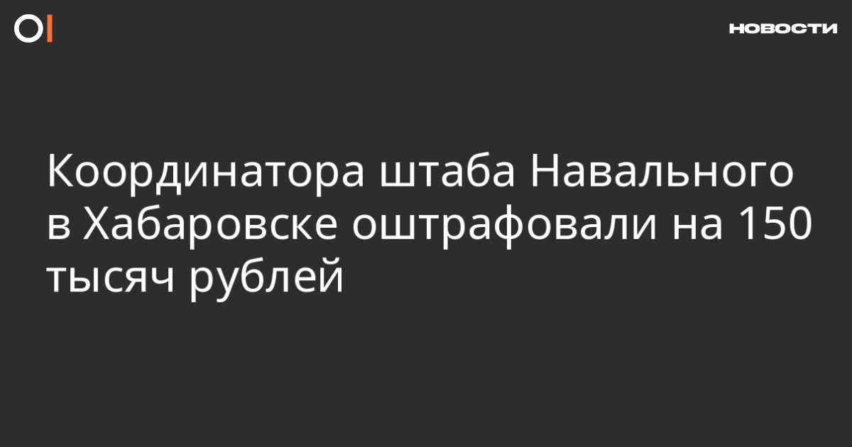 Краснофлотский районный суд Хабаровска 9 июня постановил оштрафовать на 150 тысяч рублей координатора местного предвыборного штаба Навального Алексея Ворсина. Об этом сообщает агентство «Восток-Медиа — Хабаровск».